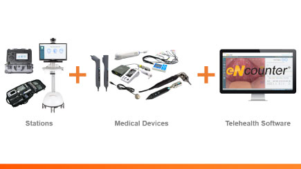 The package includes the powerful eNcounter® telehealth software platform, which facilitates customized workflows, multi-way video consultations, secure cloud-based storage, and multi-way video, audio, and chat appointments with ePrescribe capabilities.